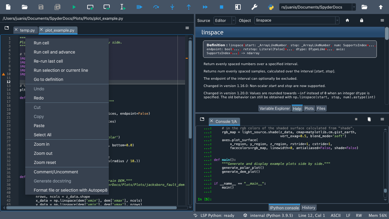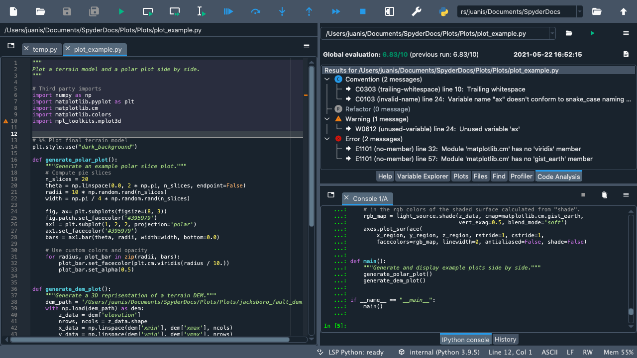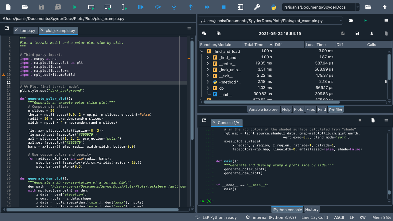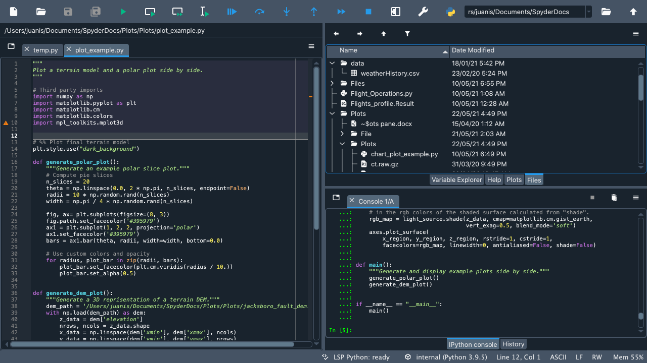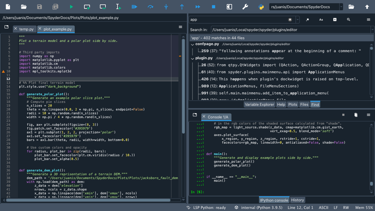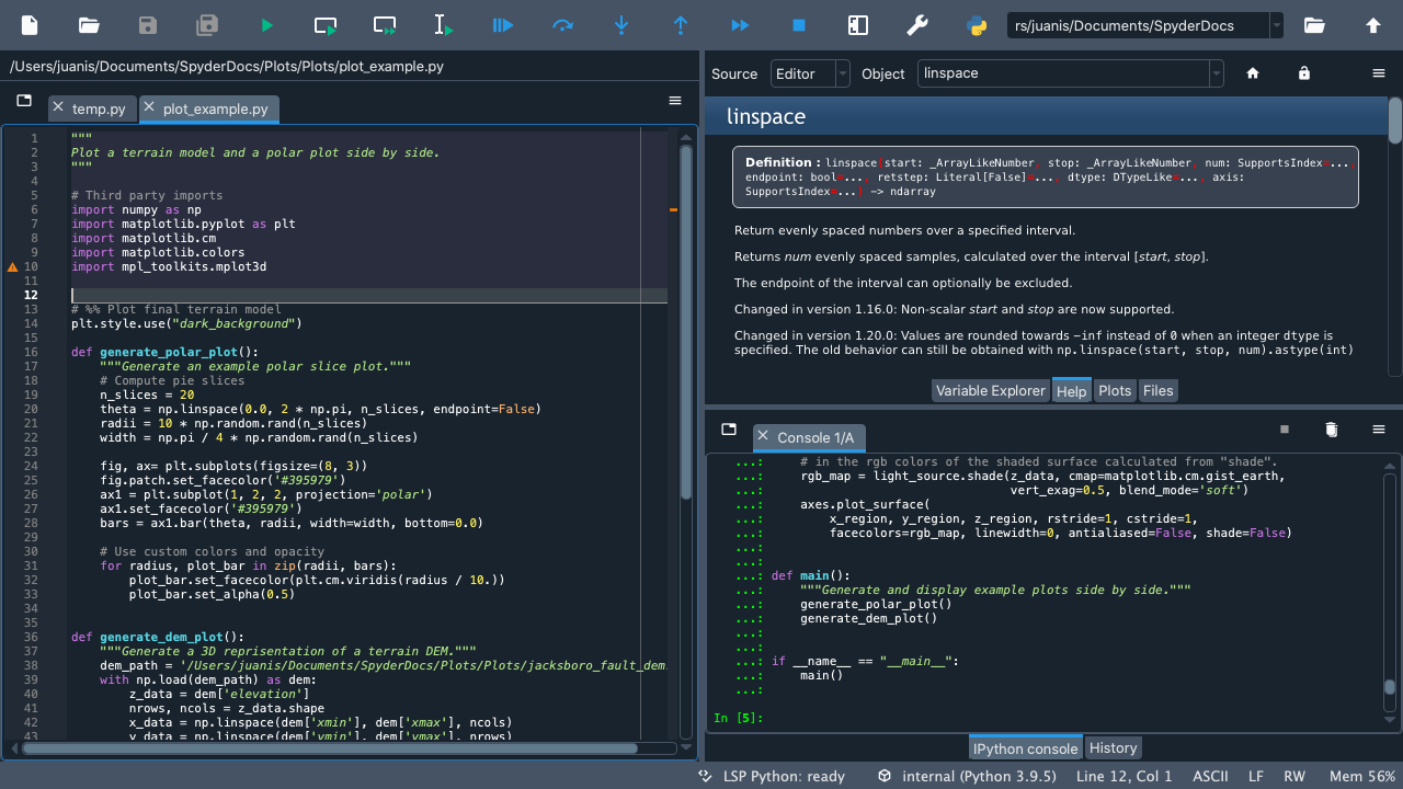 Welcome to our Quickstart! Here you will find an interactive tour that will guide you through Spyder’s interface. You’ll get familiar with the most important parts of the IDE, especially those we’ll be mentioning throughout our docs. Finally, you’ll get to walk through some of Spyder’s key panes and functionality.