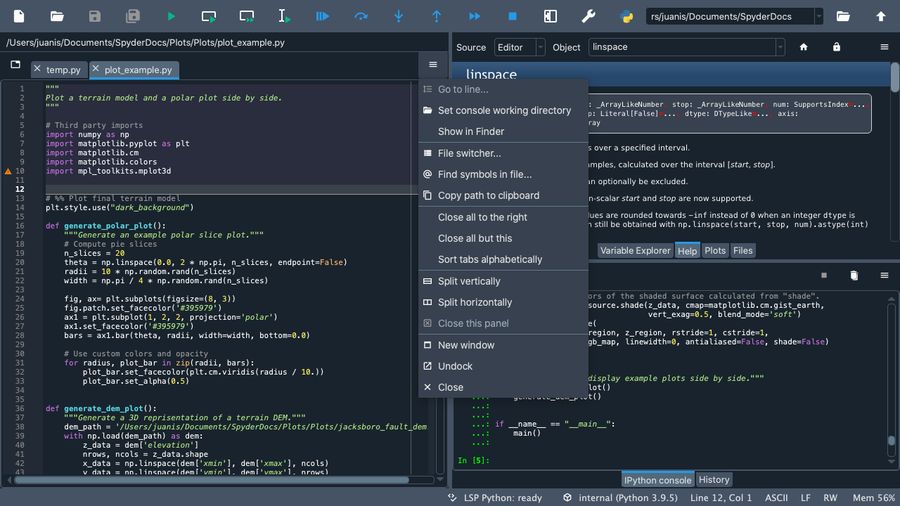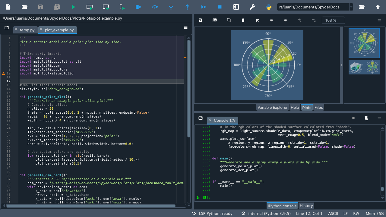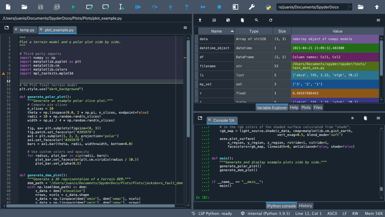 Welcome to our Quickstart! Here you will find an interactive tour that will guide you through Spyder’s interface. You’ll get familiar with the most important parts of the IDE, especially those we’ll be mentioning throughout our docs. Finally, you’ll get to walk through some of Spyder’s key panes and functionality.